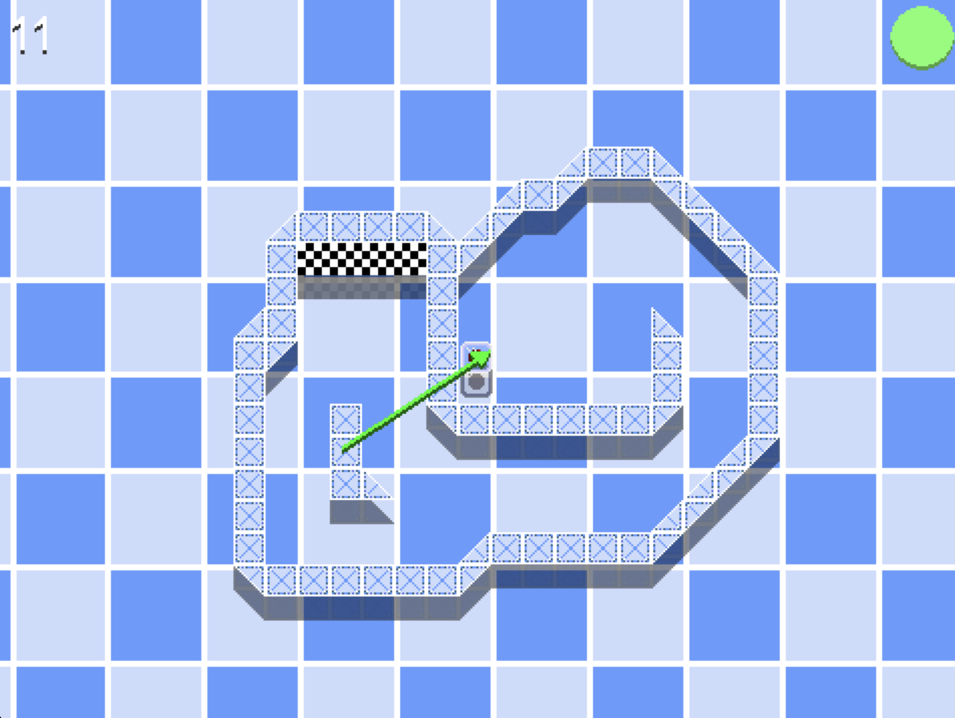 A game where you push an ice cube to a goal. You have a limited number of bounces.